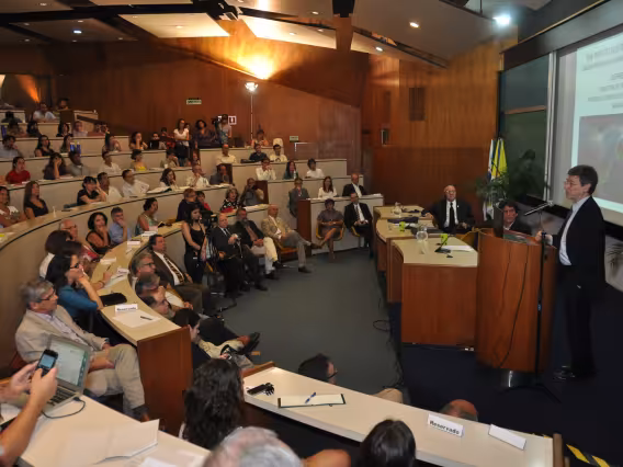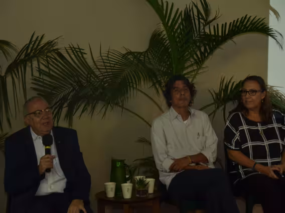 Visita de representantes da PUC-Rio ao local onde seria instalado o Pólo Avançado da Universidade na Baixada Fluminense. Grupo conhece as obras de restauração da parte mais antiga das instalações.