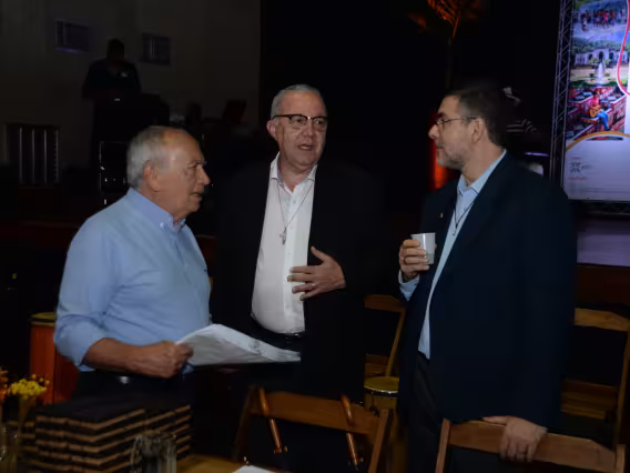 Mesa e plateia aplaudem o novo professor titular da PUC-Rio, Marco Antônio Casanova.