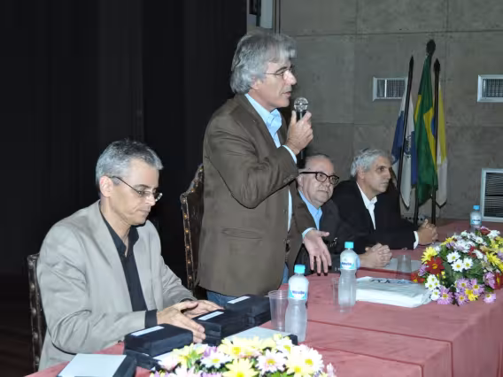O Professor Alfredo Jefferson fala algumas palavras na cerimônia de posse da Professora Daniela Vargas na função de coordenação central de graduação da PUC-Rio, que até então ele ocupava.