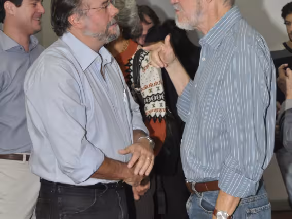 O prof. Ilmar Rohloff de Mattos conversa com o prof. Marco Antonio Pamplona após a cerimônia.