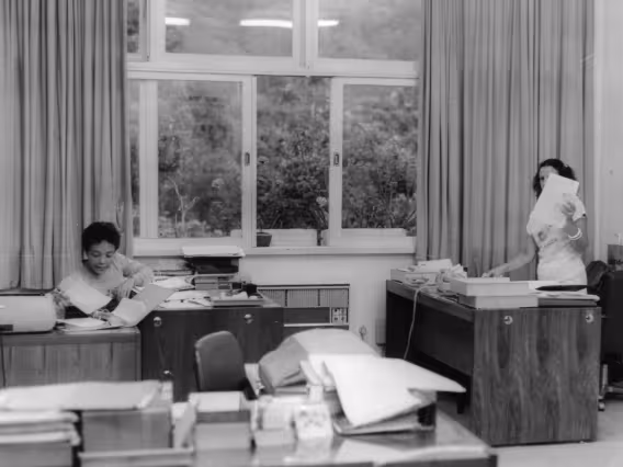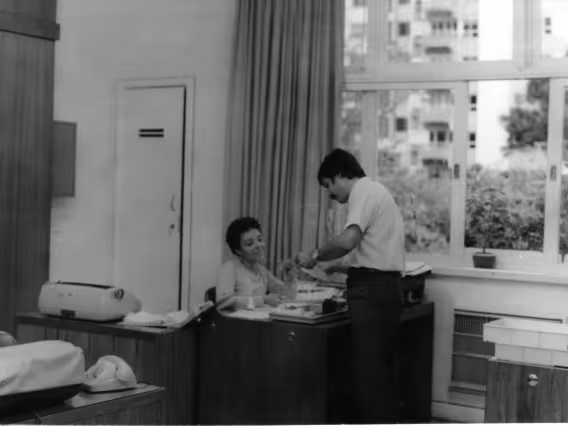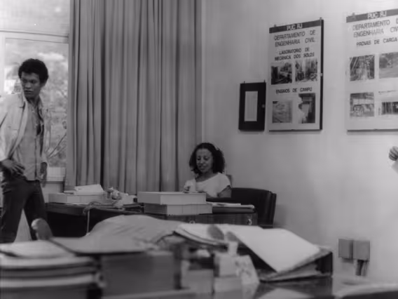 Terminal de computador IBM em sala do Departamento de Engenharia Civil.