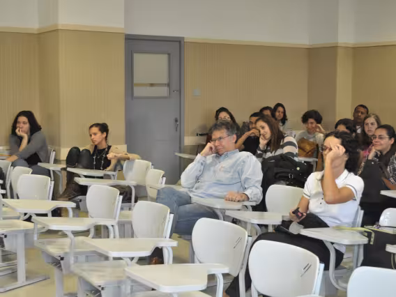 Professores, alunos e funcionários na cerimônia de poss2 de prof. Marco Antonio Villela Pamplona como Diretor do Departamento de História.