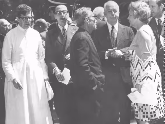 O Reitor Pe. Velloso S.J. e convidados para a inauguração do busto Pe. Leonel Franca S.J., em comemoração aos 25 anos de falecimento deste.