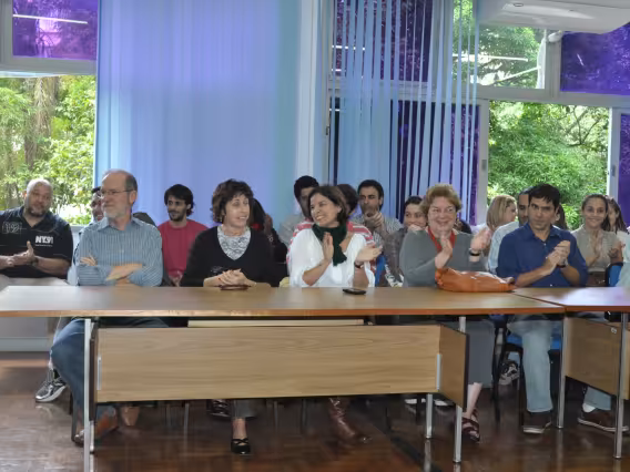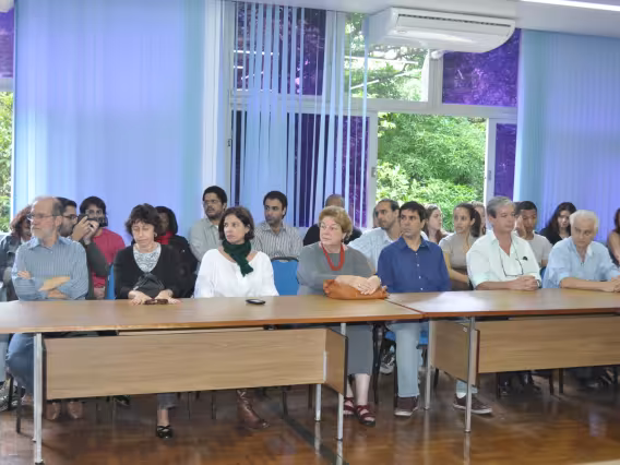 Professores, alunos e funcionários na cerimônia de poss2 de prof. Marco Antonio Villela Pamplona como Diretor do Departamento de História.