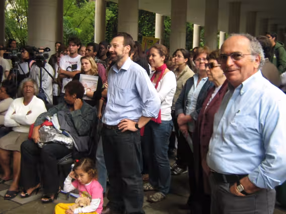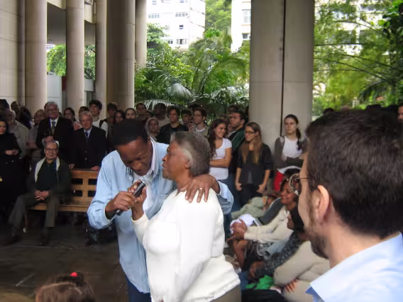 Fotografia do professor Joaquim Falcão publicada no Jornal da PUC em matéria sobre a campanha publicitária comemorativa dos 50 anos da PUC-Rio, promovida pela Fundação Roberto Marinho.
