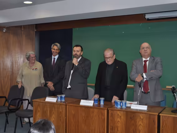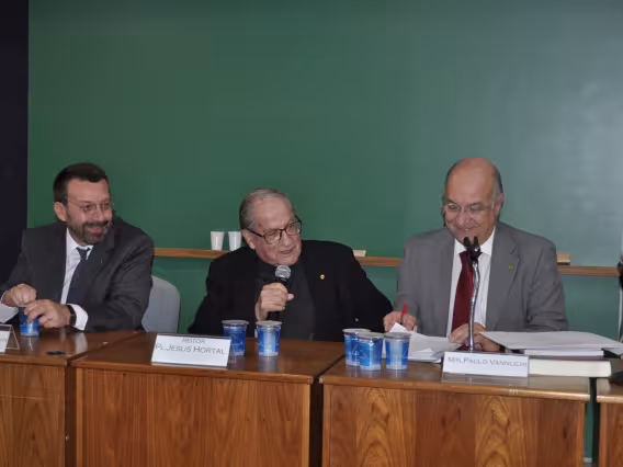 O Padre Hortal S.J. e convidados na mesa durante a Aula Magna.