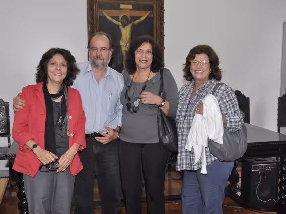 Seminário de Reflexão e Memória da Cultura Afrobrasileira', realizado na PUC-Rio em novembro de 2011. A imagem registra a mesa 'As ações afirmativas e a população negra no Brasil', coordenada e mediada pela Professora Andréia Clapp, do Departamento de Serviço Social, e formada pela Professora Ângela Paiva, do Departamento de Sociologia e Política, e pelos professores Alexandre do Nascimento, Amauri Mendes e João Feres Jr., de outras universidades.