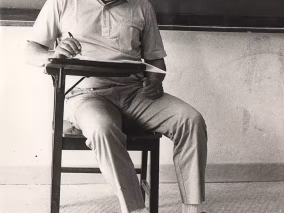 O prof. José Arthur Borges Cabral em sala de aula. Recebera o Prêmio Pierre Lucie, após 30 anos de dedicação à PUC-Rio.