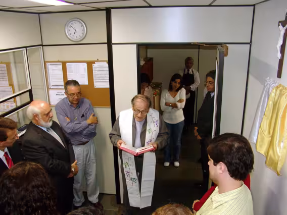 O Reitor pe. Jesus Hortal S.J., abençoa o novo Escritório Modelo.