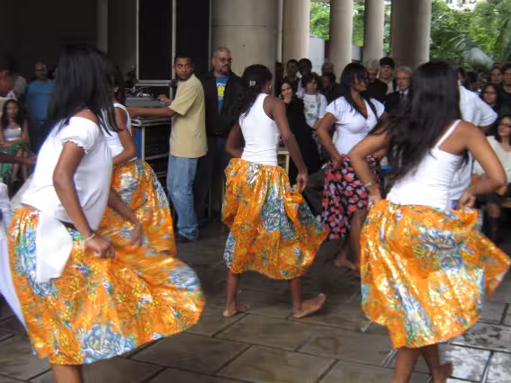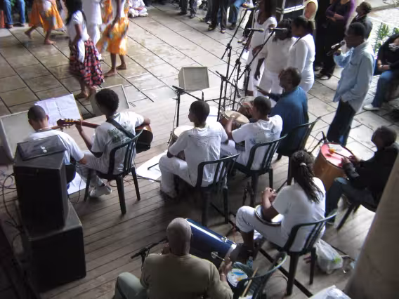 Evento nos pilotis com o grupo Raízes Serranas, do Morro da Serrinha. Aula Recital de Jongo e Samba.
