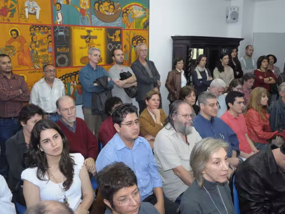 Sala do Departamento de História da PUC-Rio. De pé: César Guimarães, Ricardo Benzaquen, Margarida de Souza Neves com Alice no colo (filha de Beatriz Catão e Bernardo Ferreira), Ilmar Mattos. Sentados: Marcelo Jasmin, Berenice Oliveira Cavalcante, Selma Rinaldi Mattos, Flávia Eyler e Antônio Edmilson Rodrigues.