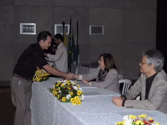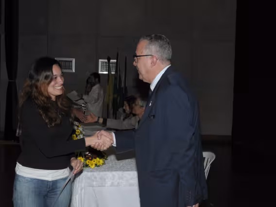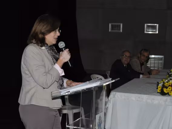 Professora Daniela Vargas em discursso na cerimônia de encerramento do XX Seminário de Iniciação Científica da PUC-Rio.