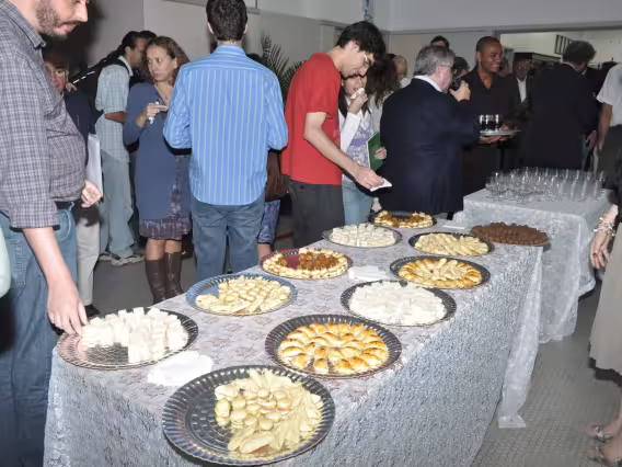 Código exclusivo rr0009_035 Coleção Recepção dos novos professores da PUC-Rio. Data de criação 26/05/2011 Natureza do documento imagem Tipo de documento fotografia cor Descrição Coffee Break pós-recepção.