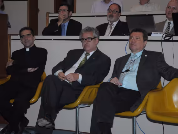 O Reitor Pe. Josafá S.J. distribui os livros aos presentes.
