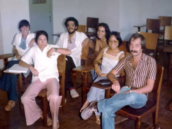 Alunos e professores em sala de aula.