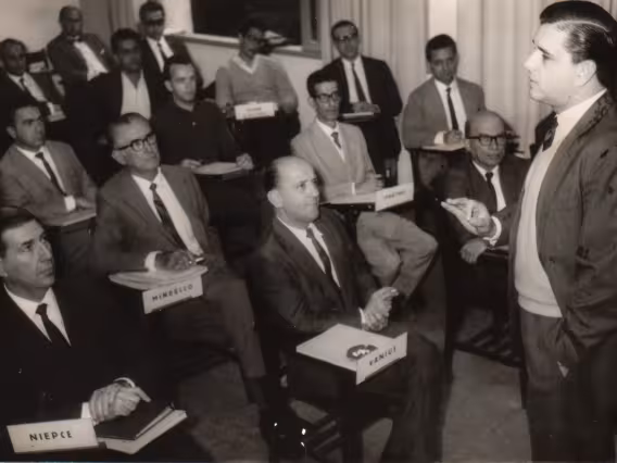 Programa IAG Master. Foto dos professores Paulo Fiúza Bocater, Sylvia Vergara, José Carlos Weyrauch Souza e Paulo César Motta.