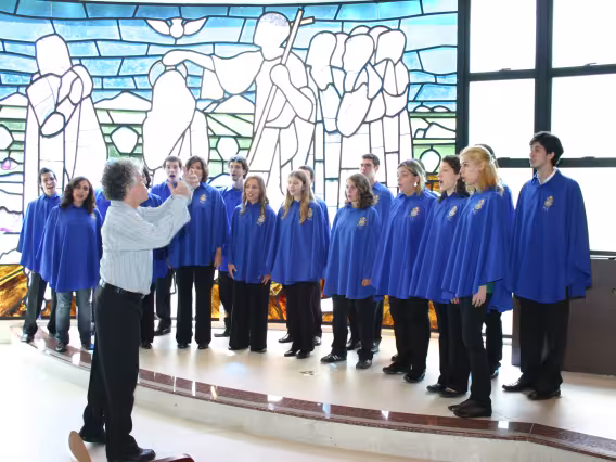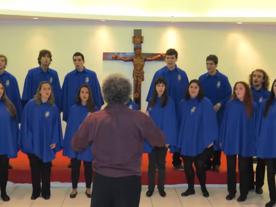 Apresentação do Coral da PUC-Rio no 29° Encontro de Corais na universidade, em novembro de 2011. Sob o comando do regente Geraldo Leão, os jovens abriram o evento com a interpretação do Hino Pontifício, de Charles Gounod, e ainda apresentaram um variado repertório, com composições nacionais e estrangeiras.