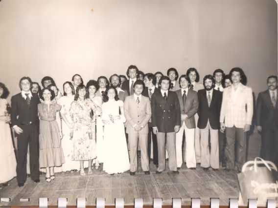 Formatura de Engenharia Civil do 1° semestre de 1975. Secretária Maria de Fátima Dinoá.