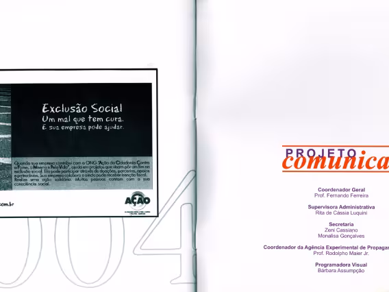 Folder sobre o Núcleo de Criação do Projeto Comunicar. Campanhas produzidas ao longo dos anos. Ação da Cidadania. Equipe do Projeto Comunicar.