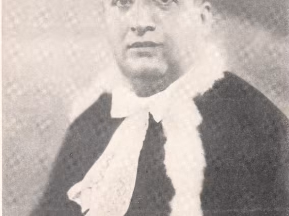 Prof. Fernando Antônio Raja Gabaglia, que figurou entre os professores fundadores da Faculdade Católica de Filosofia. Em roupas de patrono ou paraninfo de turma.