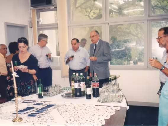 Representantes da administração central e outros professores da PUC-Rio aplaudem o Padre Ivern.
