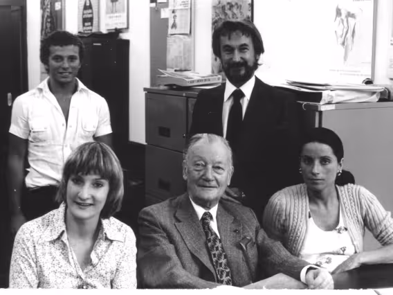 Prof. João Cândido Portinari em frente ao mosaico em montagem, Jesus entre os doutores, projetado por Candido Portinari.