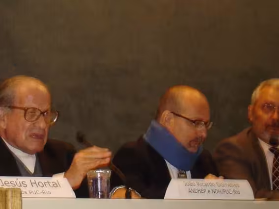 O Padre Hortal S.J. e convidados na mesa durante a Aula Magna.