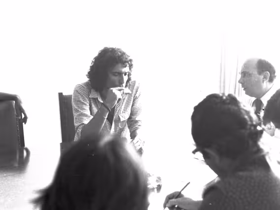 Código exclusivo ls0022_004 Coleção Reunião do DCE com o Reitor Padre Mac Dowell, S.J. Data de criação 01/01/1980 Natureza do documento imagem Tipo de documento fotografia PB Descrição Reunião do Reitor com o DCE.