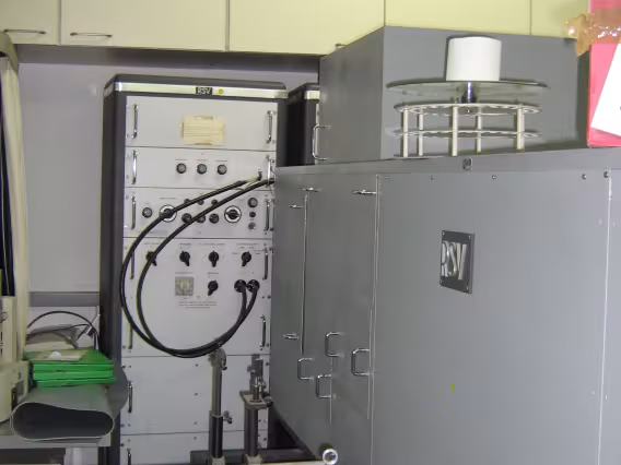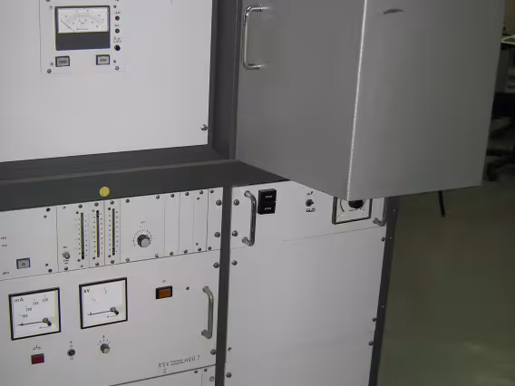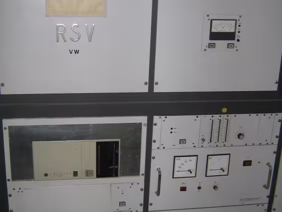 Equipamentos dos laboratórios. Está escrito no aparelho "RSV Präzisions messgeräte PMV 02".