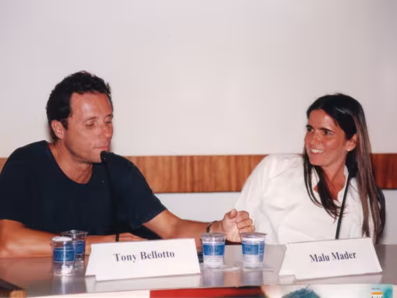 Malu Mader e Tony Bellotto em debate sobre o livro e o filme Bellini e a Esfinge, realizado no Auditório do RDC.