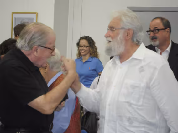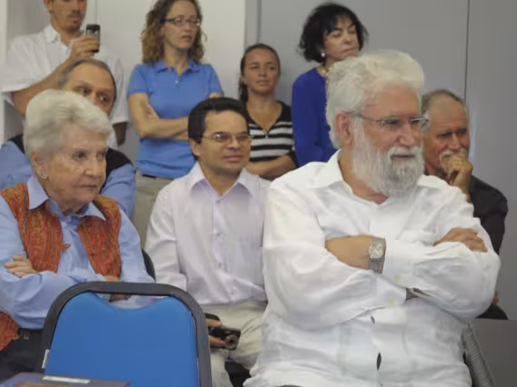 Retrato em grupo dos professores, funcionários e convidados do coquetel.