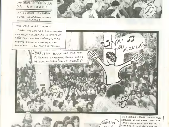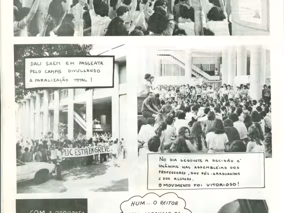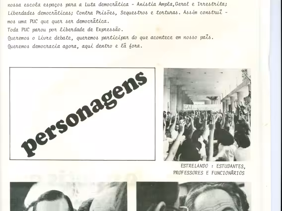 Página 03. Fotonovela sobre a vinda de Miguel Arraes à PUC-Rio. Conclusão do processo, após a saída de Arraes. Proposta de greve geral.