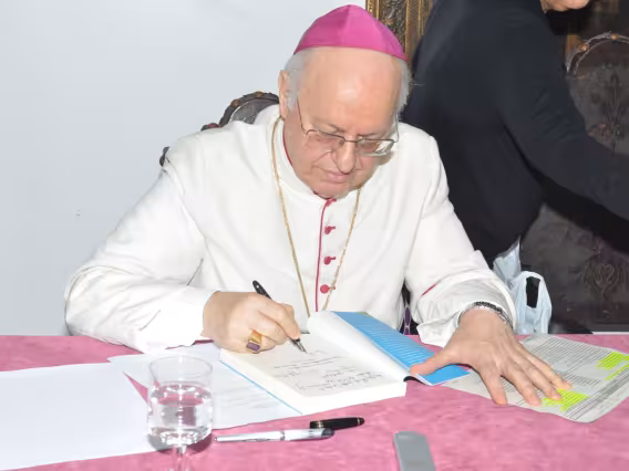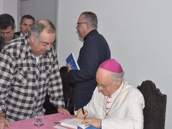 O Núncio Apostólico no Brasil, Dom Lorenzo Baldisseri, autografa seu livro 'Diplomacia Pontifícia - Acordo Brasil-Santa Sé - Intervenções', lançado aquele dia, na PUC-Rio