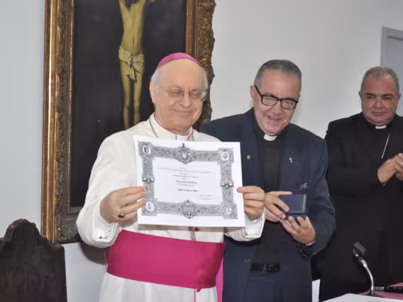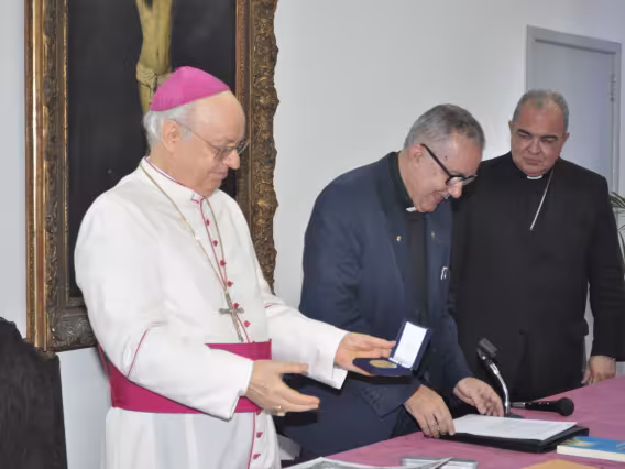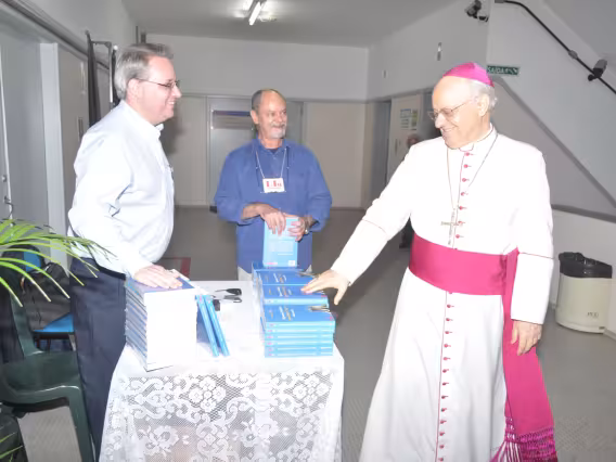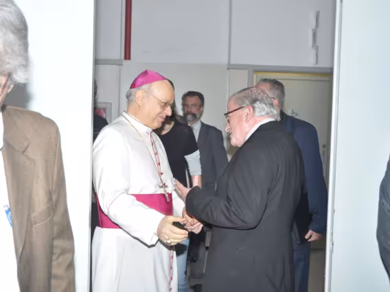 Visita do Núncio Apostólico no Brasil, Dom Lorenzo Baldisseri, à PUC-Rio, para lançamento de seu livro 'Diplomacia Pontifícia - Acordo Brasil-Santa Sé - Intervenções'. Na imagem, o Padre Hortal fala algumas palavras.