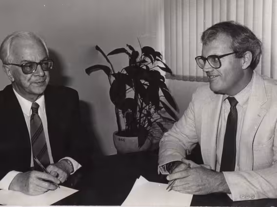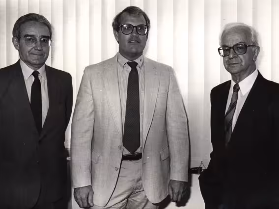 Prof. pe. Antonio Geraldo Amaral Rosa S.J. em reunião relativa ao convênio da PUC com a IBM.