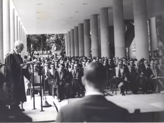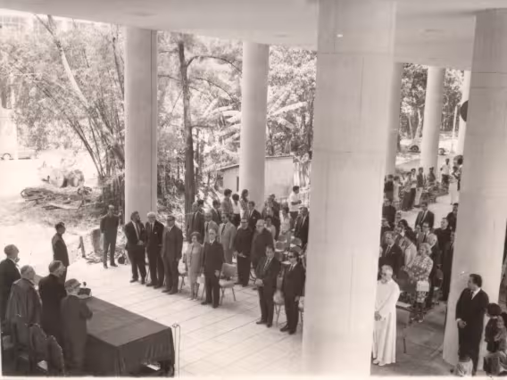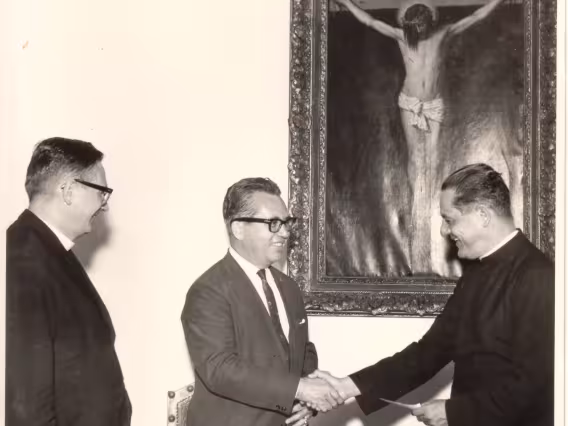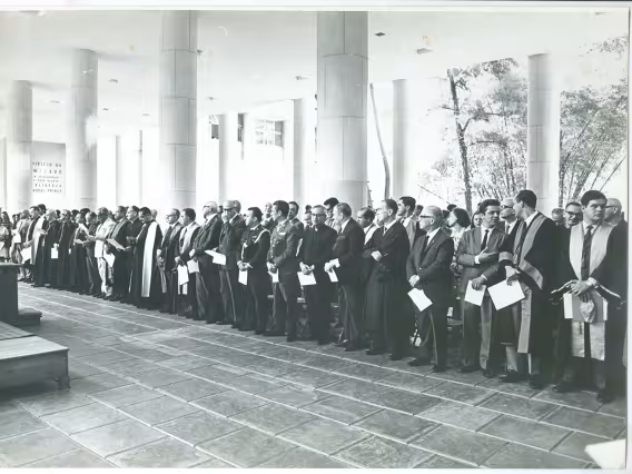 Entrega de doação à PUC-Rio. Pela presença do Pe. Hainberger S.J., talvez seja uma das que possibilitou a construção do edifício do Instituto de Química.
