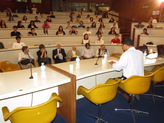Auditório do RDC durante a palestra 'Terra, que tempo é esse?'.