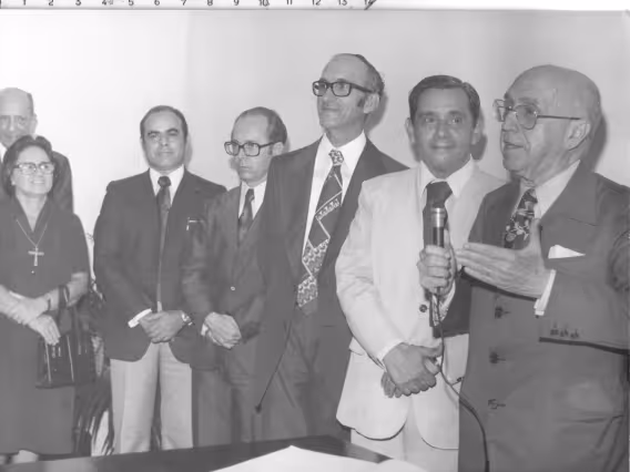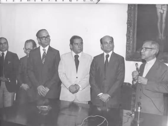 Código exclusivo cg0050_050 Coleção Acervo de Fotos do Projeto Comunicar - cont. Data de criação 01/01/1982 Natureza do documento imagem Tipo de documento fotografia PB Descrição Posse não identificada com o prof. Haroldo Valadão na função de orador.