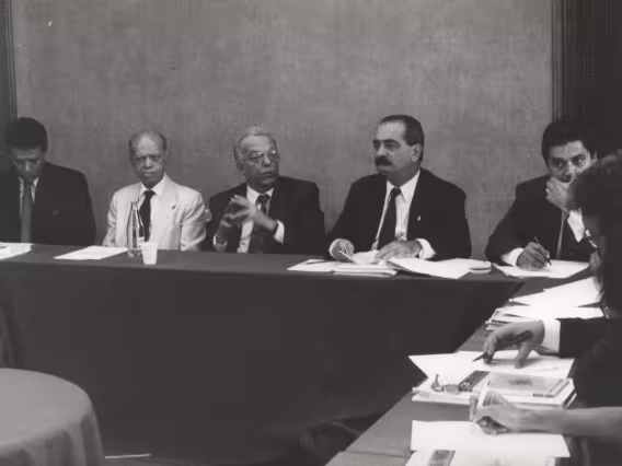 Palestrante na mesa de conferência sobre semiótica linguística.