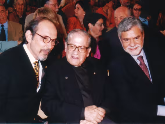 Código exclusivo ak0006_018 Coleção Acervo do Pe. Jesús Hortal Sànchez S.J. Data de criação 01/01/2005 Natureza do documento imagem Tipo de documento fotografia cor Descrição O Reitor Pe. Hortal em plateia de evento, ao lado de Osias Wurman, presidente da Federação Israelita do Rio de Janeiro, e de Tito Riff.