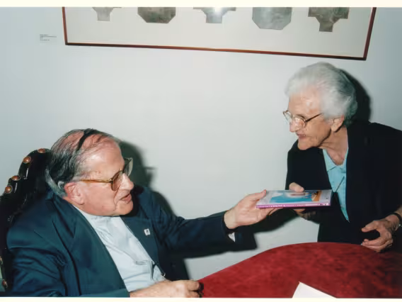 Código exclusivo ak0006_043 Coleção Acervo do Pe. Jesús Hortal Sànchez S.J. Data de criação 01/12/2002 Natureza do documento imagem Tipo de documento fotografia cor Descrição Irmã Alda (das irmãs de Sion) no lançamento do livro do Pe.Jesus Hortal S.J., A Universidade, realidade e esperança.