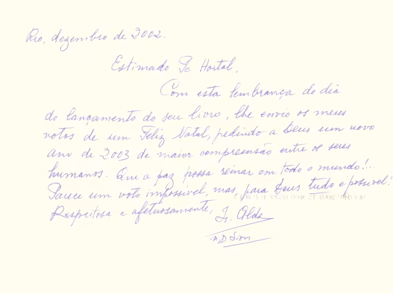 Código exclusivo ak0006_044 Coleção Acervo do Pe. Jesús Hortal Sànchez S.J. Data de criação 01/12/2002 Natureza do documento imagem Tipo de documento fotografia cor Descrição Verso da foto do lançamento do livro do Pe. Hortal.