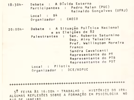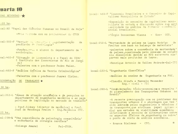 Frente. Atividades do 1º Congresso Interno da PUC-Rio - programação das mesas redondas e apresentação de trabalhos.
