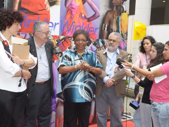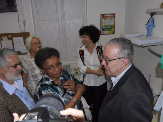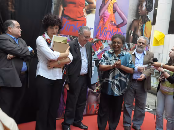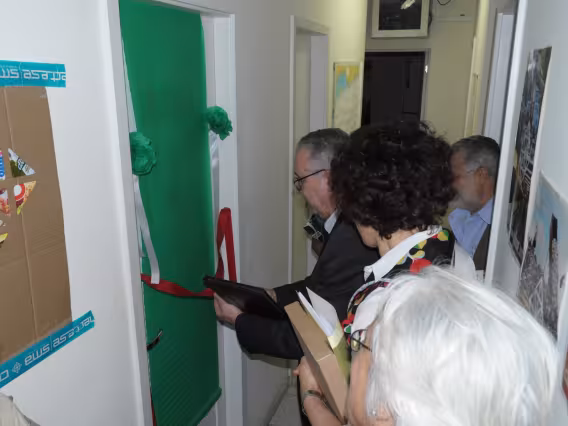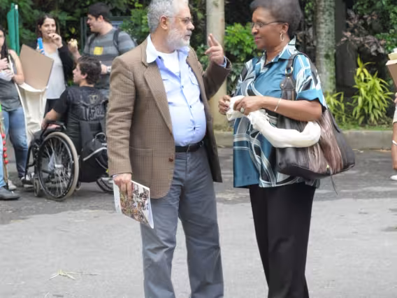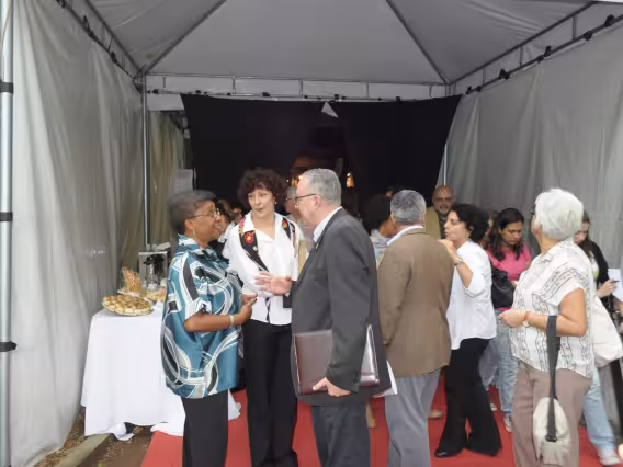 Assistência do evento de abertura da exposição de fotografias.