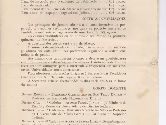 Terceira página do folheto sobre os cursos da Faculdade de Direito, ainda localizada na rua São Clemente.