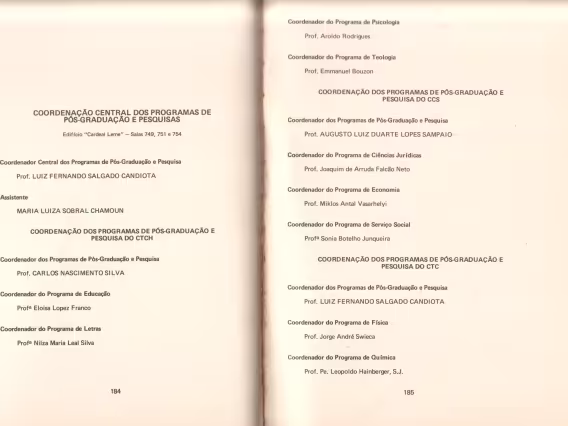 Páginas selecionadas do Anuário 1971. Versão em OCR. Capa do Anuário PUC-Rio 1971 >>> p. 2 e 3 - Índice do Anuário PUC-Rio 1971 com introdução mais cinco partes >>> p. 4 - Quadro geral de matrículas desde a fundação da Universidade >>> p. 5 - Quadro geral de matrículas de 1968 a 1970 >>> p. 6 - Quadro de Matrícula Final - 1971 >>> p. 7 – foto - Conclusão da construção de mais seis andares sobre o bloco do Departamento de Física. >>> p. 8, 9 e 10 - Coordenação Central dos Programas de Pós-Graduação e Pesquisas >>> p. 11 - Quadro do Corpo Discente - Alunos matriculados no Ano Letivo de 1971 por curso >>> p. 12 - Quadro de Bolsas de Estudos oferecidas para alunos de tempo integral no ano de 1971. >>> p. 13 – foto - O reitor, pe. Ormindo Sodré Viveiros de Castro S.J., entrega o Título de Doctor Honoris Causae ao prof. Merril Eisenbud, físico emérito e grande benfeitor da PUC-Rio – 09 de dezembro de 1971.