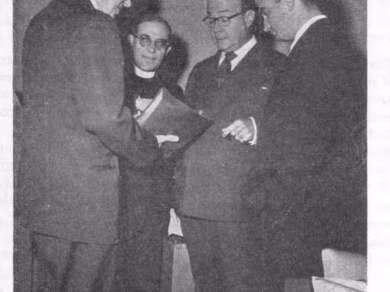 Delegação Brasileira à Comissão Científica da O.N.U. Prof. Carlos Chagas, Pe.F.Xavier Roser S.J., Prof. Pavan, Dr. Nelson Libanio e Prof. Bernard Gross.