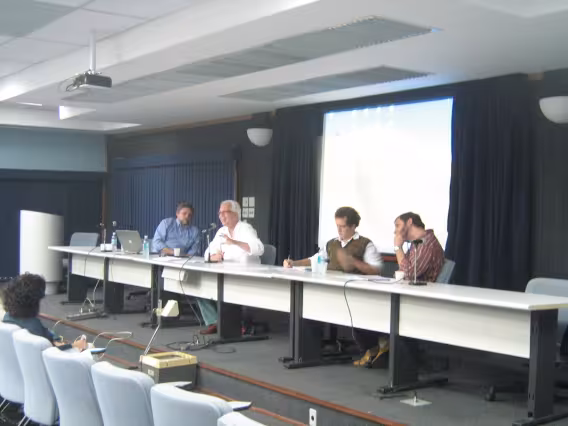 Mesa com Ricardo Ismael, Eduardo Raposo, Marcelo Burgos e Paulo d'Ávila, todos da PUC-Rio.