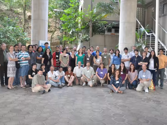 Do lado de fora do Auditório Anchieta, a plateia acompanha a abertura do evento.