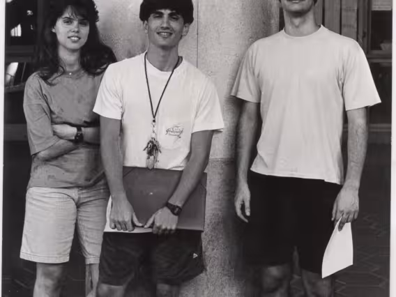 Código exclusivo cg0129_400 Coleção Fotos impressas do acervo Projeto Comunicar Data de criação 08/03/1991 Natureza do documento imagem Tipo de documento fotografia PB Descrição Alunos do Departamento de Física posam para foto nos pilotis da Ala Leme.